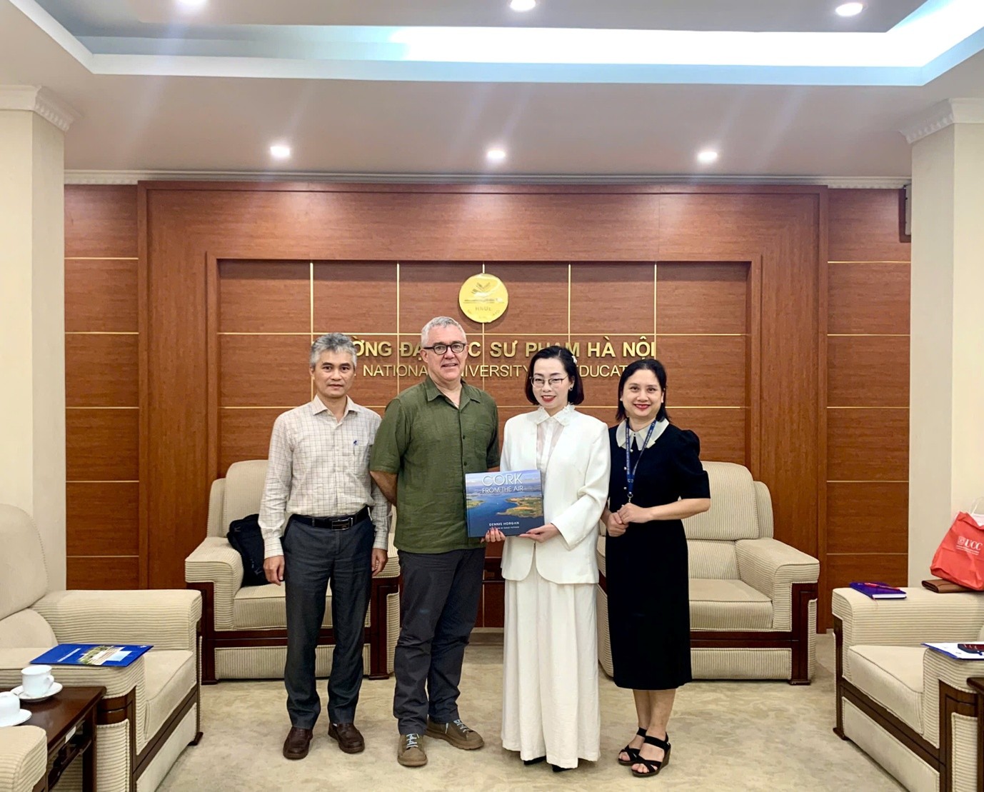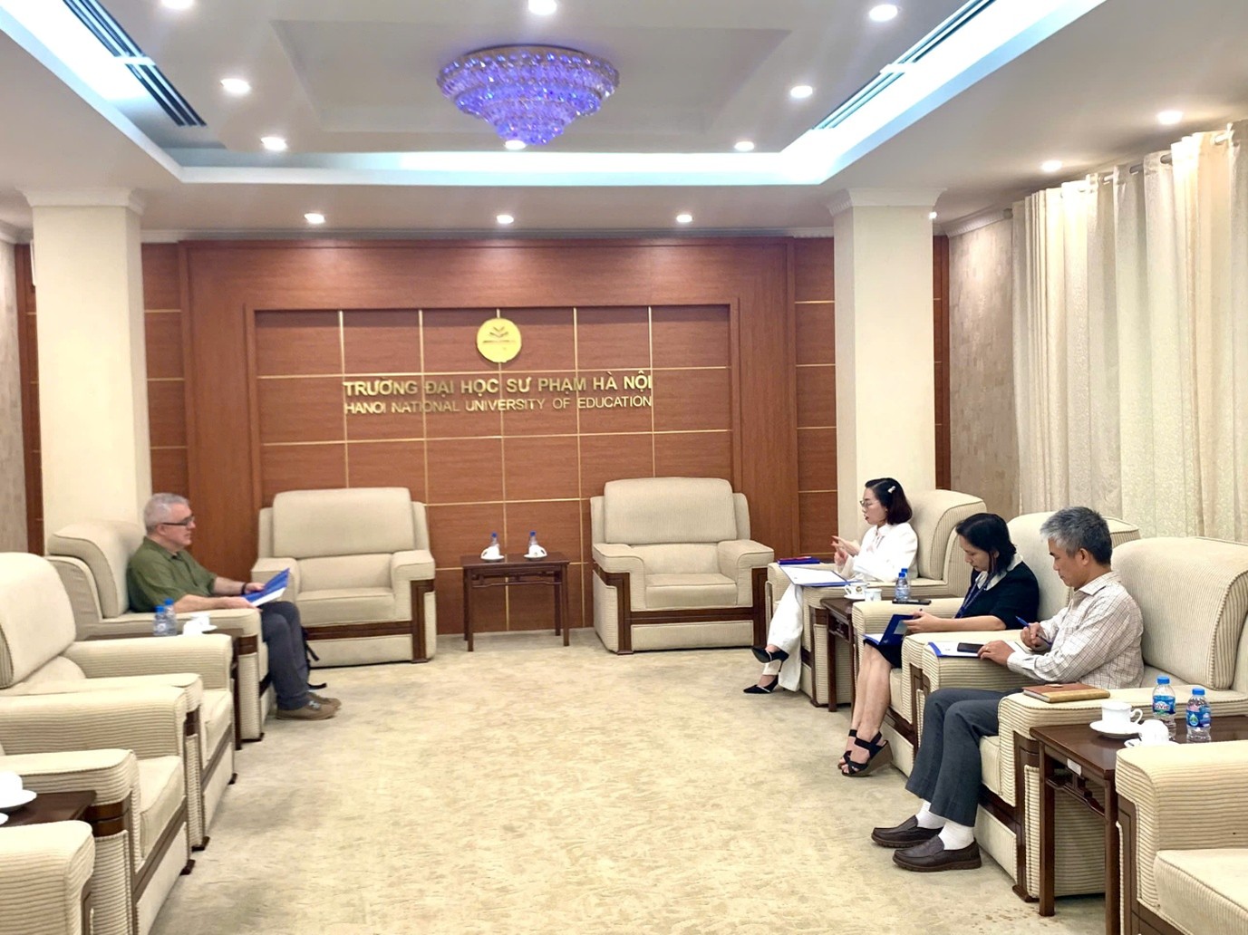 Trong phần trao đổi, TS. Trần Hương Quỳnh, Trưởng khoa Tiếng Anh đã trình bày nhu cầu về phát triển năng lực tiếng Anh cho đội ngũ giảng viên và sinh viên, đặc biệt trong bối cảnh Việt Nam đang đẩy mạnh triển khai mô hình trường học dạy học bằng tiếng Anh. Trường ĐHSP Hà Nội mong muốn tăng cường các hoạt động bồi dưỡng giảng viên, tổ chức môi trường sử dụng tiếng Anh trong toàn trường, xây dựng các chương trình ngoại khóa và hoạt động hỗ trợ sinh viên, đồng thời mở rộng cơ hội hợp tác quốc tế trong đào tạo giáo viên và phát triển chương trình học thuật.