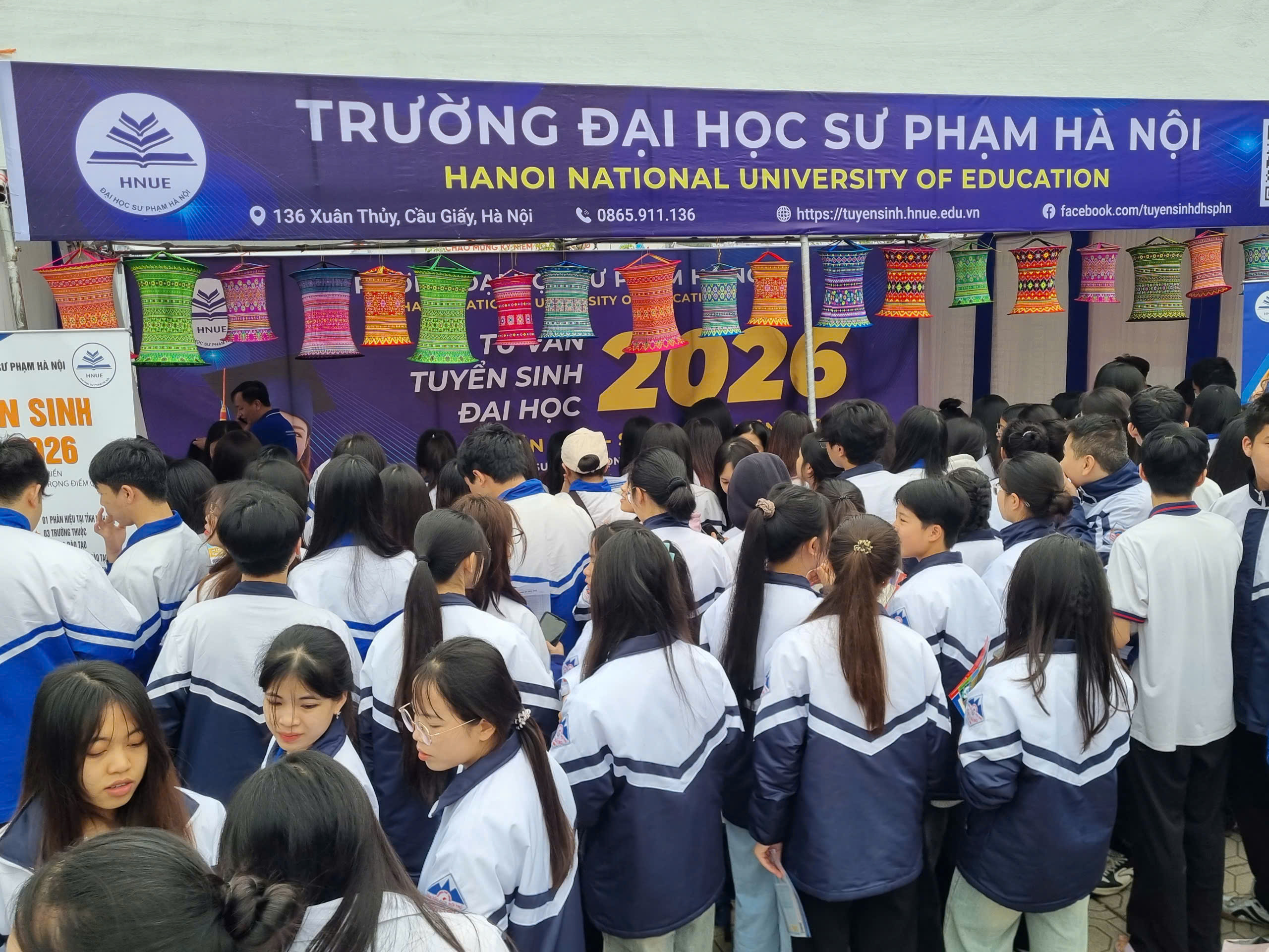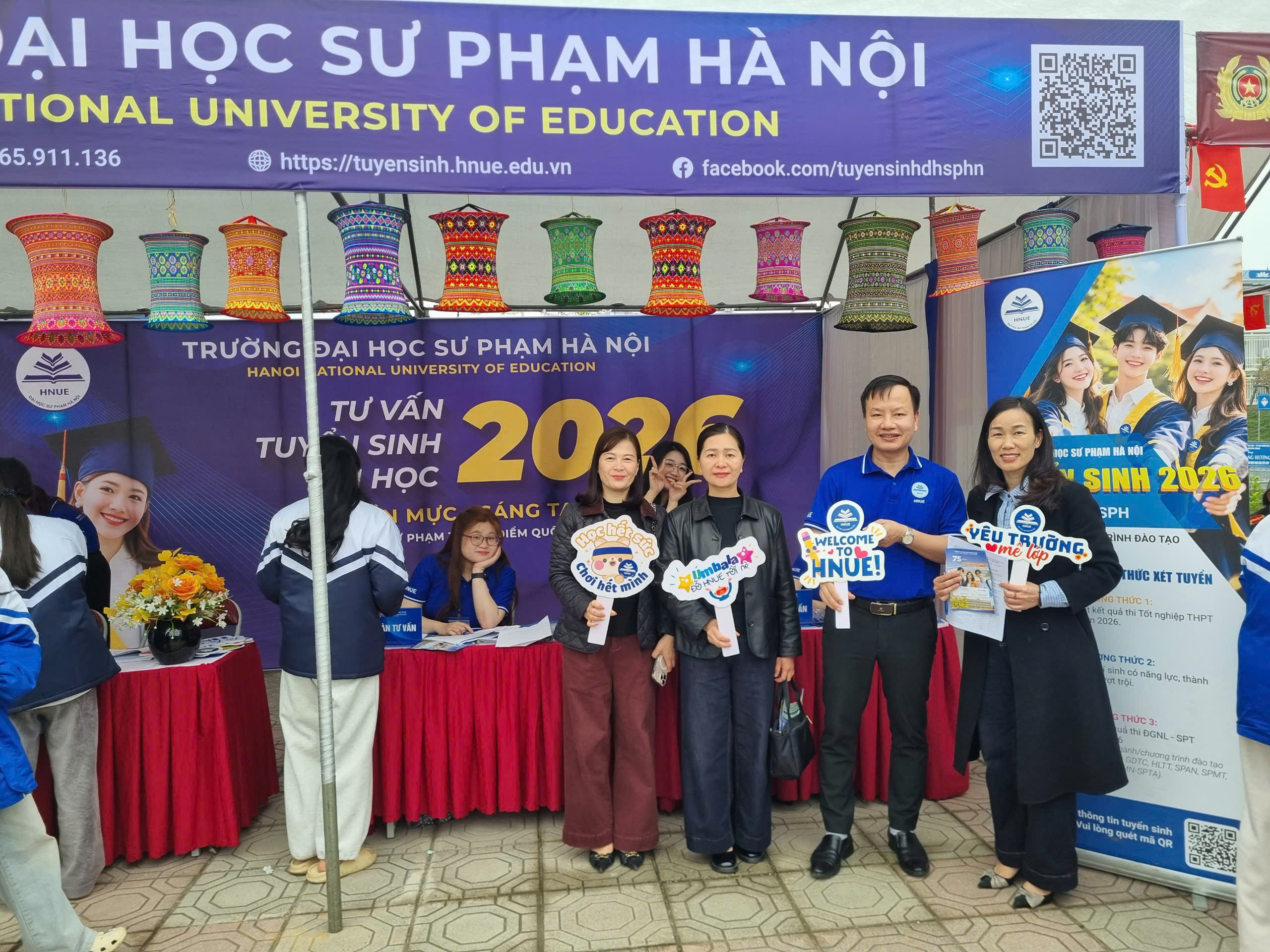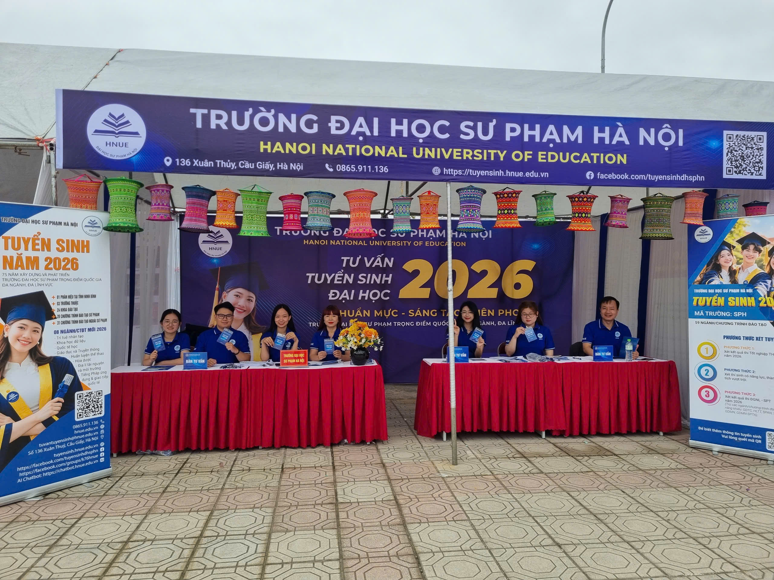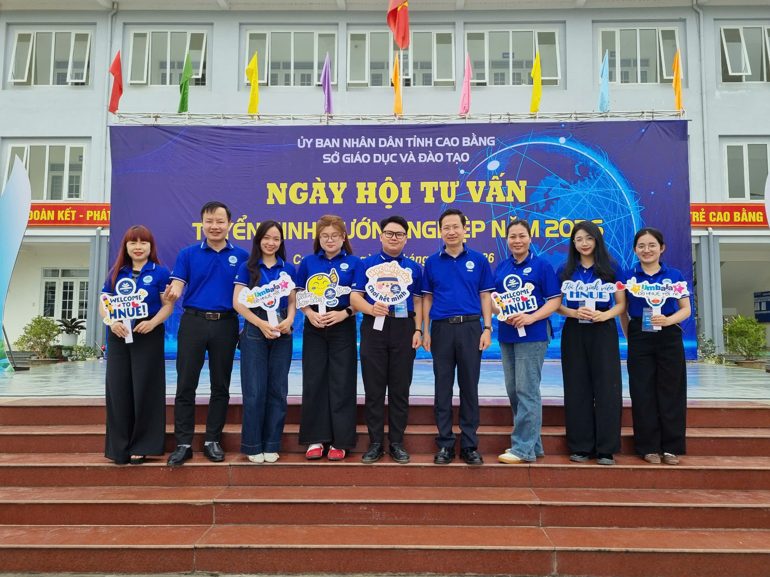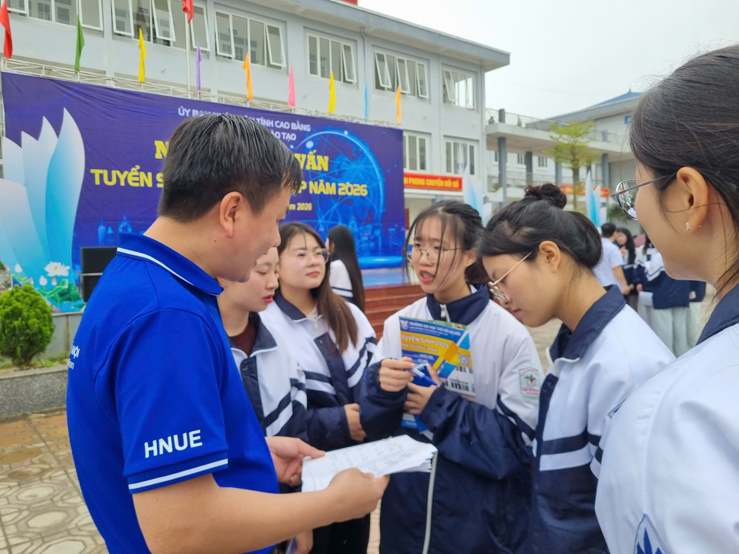 Tham dự Ngày hội tư vấn tuyển sinh đại học năm 2026 của tỉnh Cao Bằng về phía lãnh đạo tỉnh có đồng chí Nguyễn Ngọc Thư - Giám đốc Sở GD&ĐT, đồng chí Nguyễn Xuân Hiến - Phó Giám đốc Sở GD&ĐT cùng đại diện lãnh đạo các Trường Đại học, Cao đẳng tham gia tư vấn tuyển sinh. Về phía Trường Đại học Sư phạm Hà Nội có PGS.TS. Nguyễn Lân Hùng Sơn - Trưởng Phòng CTCT-HSSV, TS. Trần Cường - Phụ trách Trung tâm KT và ĐGCLGD, Phó trưởng phòng Đào tạo, TS. Hồ Công Lưu - Phó Trưởng phòng CTCT-HSSV, ThS. Hoàng Thu Huyền - Phó Trưởng phòng CTCT-HSSV cùng các thành viên trong đoàn tư vấn, truyền thông tuyển sinh của trường.