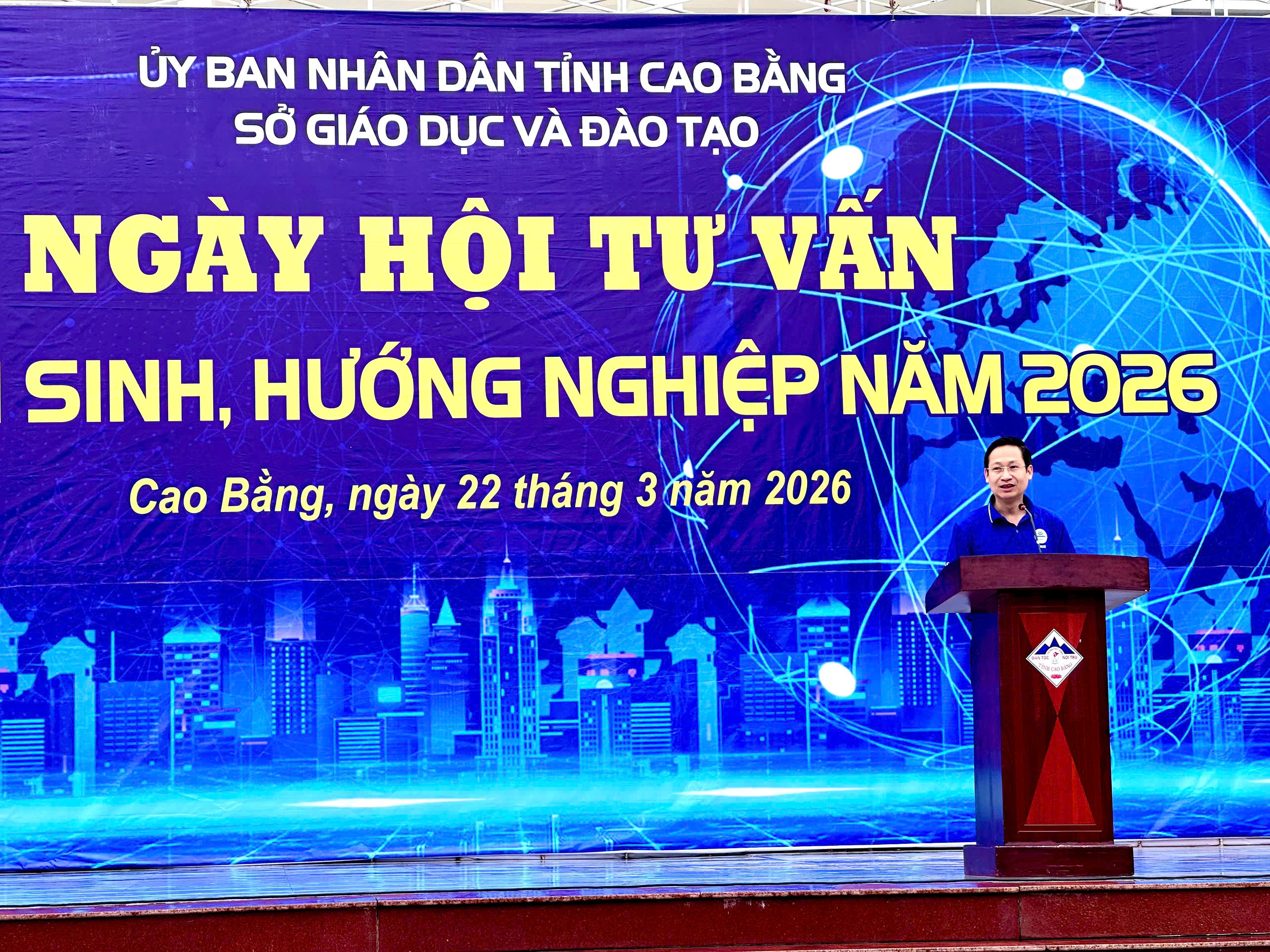 Phát biểu khai mạc Ngày hội tư vấn tuyển sinh đại học năm 2026 của tỉnh Cao Bằng, thay mặt lãnh đạo Sở GD&ĐT, đồng chí Nguyễn Xuân Hiến đánh giá cao công tác tư vấn tuyển sinh, hướng nghiệp của các trường THPT trong tỉnh, đồng thời cảm ơn các Trường Đại học, Cao đẳng đã luôn đồng hành cùng với tỉnh để tham gia cung cấp thông tin, tư vấn kịp thời tới học sinh, giúp các em định hướng và lựa chọn tốt các ngành nghề, chương trình đào tạo phù hợp với năng lực của mỗi em. Đồng thời, học sinh được nắm bắt rõ hơn về các phương thức tuyển sinh, quy chế tuyển sinh cập nhật mới của Bộ GD&ĐT năm 2026 cũng như của các trường ĐH, CĐ. Lãnh đạo Sở GD&ĐT tỉnh Cao Bằng cũng cho biết nhờ nỗ lực đẩy mạnh các hoạt động giáo dục, đào tạo và tư vấn tuyển sinh nên tỷ lệ học sinh THPT trên địa bàn tỉnh trúng tuyển vào các trường ĐH, CĐ tăng từ 33,59% năm 2023 lên 50,6% năm 2025. Năm nay là năm đầu tiên tỉnh phối hợp với Trường Đại học Sư phạm Hà Nội tổ chức điểm thi đánh giá năng lực SPT ngay tại Trường THPT chuyên tỉnh Cao Bằng. Việc mở rộng nhiều điểm thi và nhiều đợt thi cũng góp phần tạo cơ hội công bằng trong tiếp cận các cơ hội giáo dục cho đông đảo học sinh, đặc biệt là các em ở các tỉnh xa Hà Nội. Lãnh đạo Sở GD&ĐT cũng đề nghị các trường THPT thông báo rộng rãi để học sinh trong tỉnh biết và có thể đăng kí dự thi online từ ngày 15/3/2026 đến hết ngày 15/4/2026.